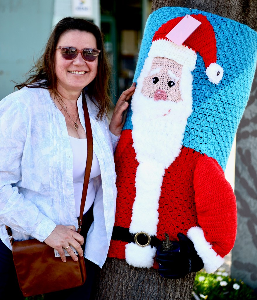 Liz’s move to St Leonards coincided with the first year of what is now an annual yarn-bombing event*. She says her first thought was that it was ‘a waste of wool’. She got over that though, and is now on her fourth. As for wasting wool – each of her past three yarn-bomb creations have been repurposed as blankets. Liz’s creations have included a seal, alpaca, seagull and pelican and this year it is Santa with a stubby in hand to pay tribute to its location outside the pub. ‘I like to see kids point (at my yarn-bombing creation) and have a giggle’. Liz said she is already thinking about what she will do next year. Each yarn-bomb creation she says takes about 50 hours to make.