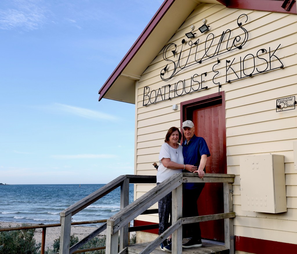It was December 1977 and Ann and Neil were both camping with mutual friends in Indented Head. They didn’t know each other then, but the universe would conspire to make sure they soon would. It was a Saturday night, and as you do when you are young and on holidays, everyone headed to the St Leonards Pub. “The pub looked pretty much like it does now” recalled Ann, only then it was just modern – not retro modern. There was a band playing early Beatles covers, which impressed Neil who was a budding musician himself. It was a hot night and the place pretty crowded so when Ann headed off for a walk to cool down, Neil offered to go with her. And wouldn’t you know it, an almighty thunderstorm erupted so they headed for shelter under the eve of the pier shed. And there, with the rain pelting down, they kissed – “And that was it” said Neil, ‘We’ve been together ever since”.